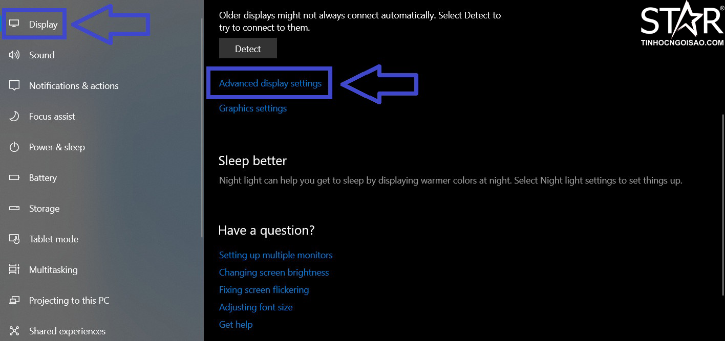 Bước 2: Chọn dòng Advanced display settings ở mục Multiple Display