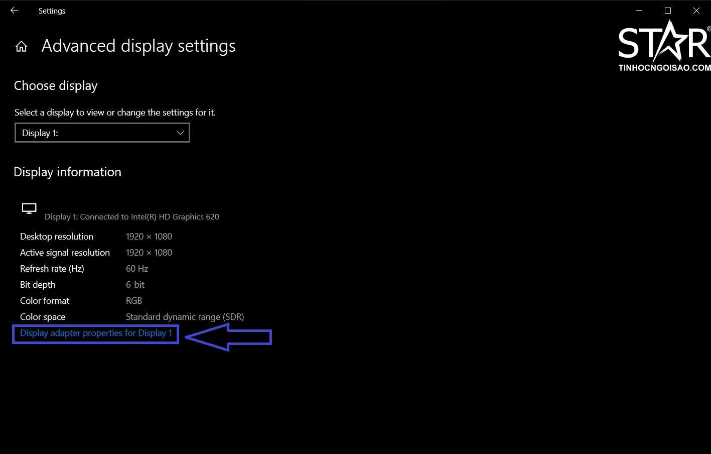 Bước 3: Chọn dòng Display adaptor properties for Display 1