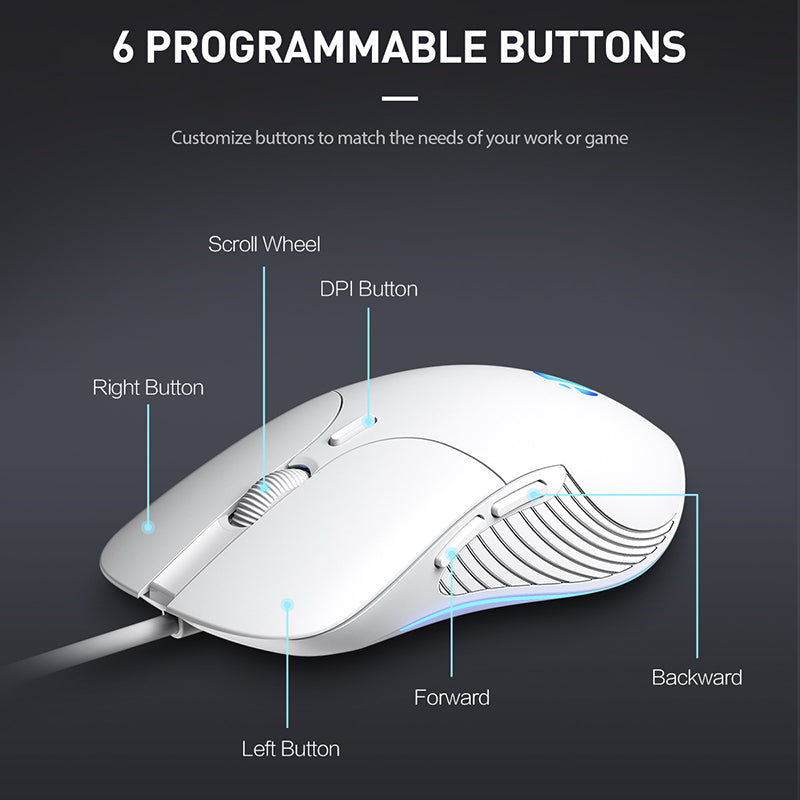 Chuột gaming INPHIC B1 | Wired, 7200 DPI, 105g, Trắng