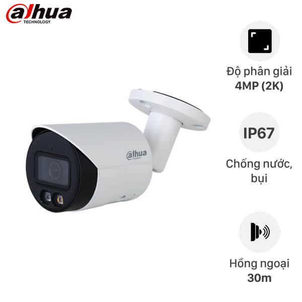 Camera IP thân trụ DAHUA DH-IPC-HFW2449S-S-IL | 4MP, Full Color, Ánh sáng kép thông minh