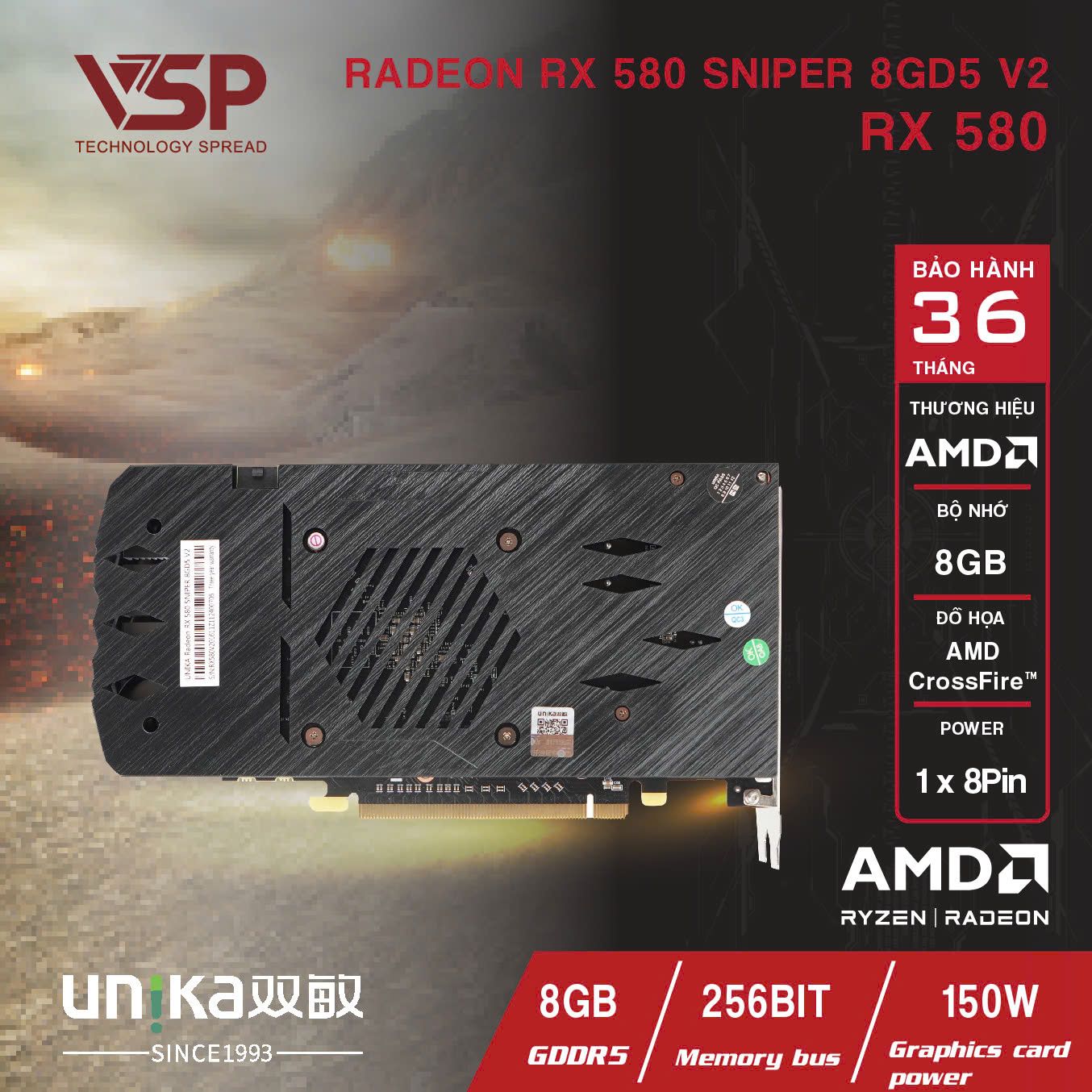 Card màn hình UNIKA SNIPER RX580 8G 2 Fan