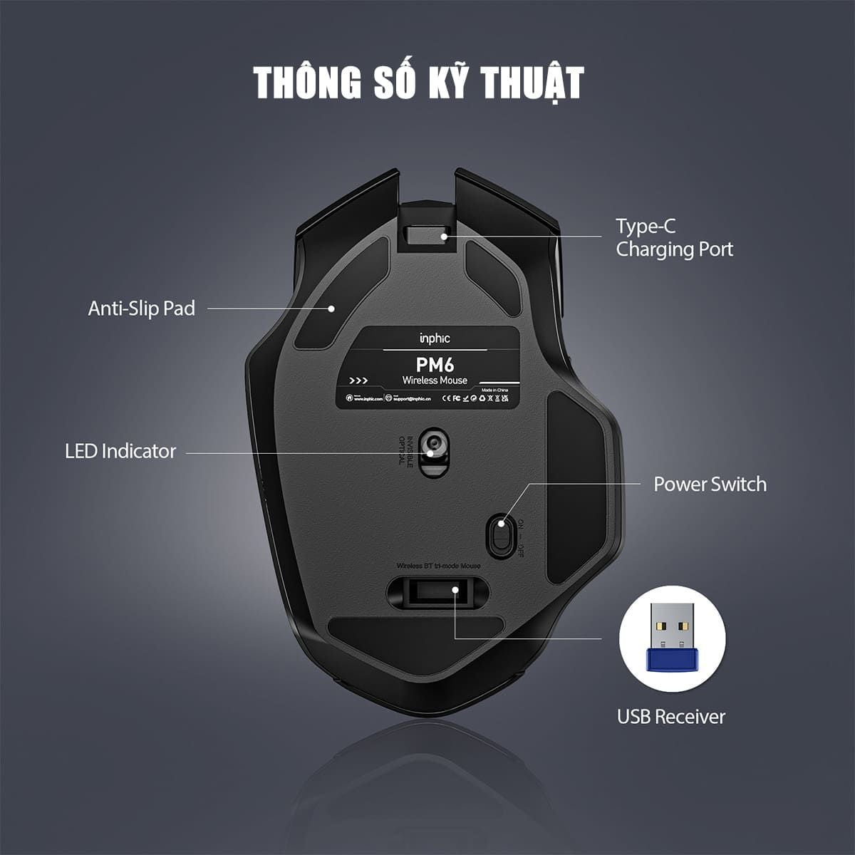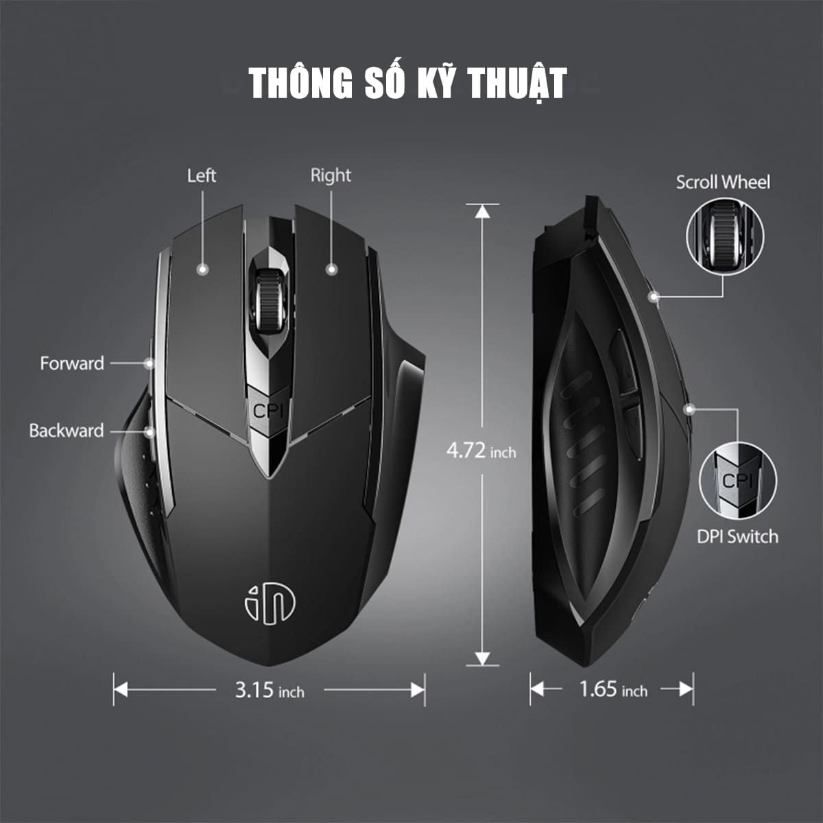 Chuột văn phòng INPHIC F1S | Wireless, 2400 DPI, 95g, Đen