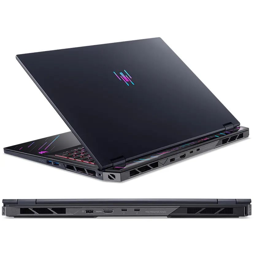 Bàn phím có đèn nền RGB từng phím, phím nóng PredatorSense và Copilot Key hỗ trợ thao tác nhanh chóng. Cổng kết nối hiện đại bao gồm: Thunderbolt™ 5, HDMI® 2.1, USB-C/USB-A tốc độ cao, khe thẻ SD, jack 3.5mm, Ethernet...