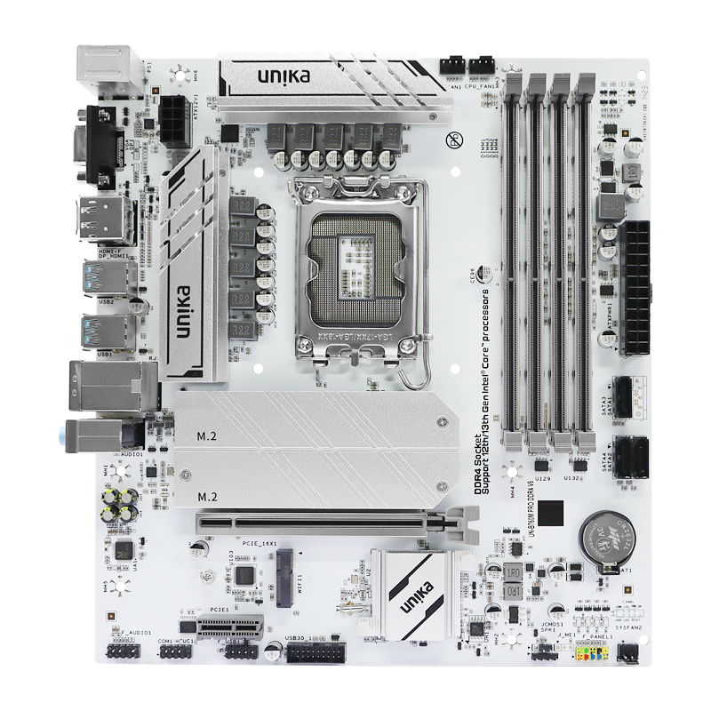 Mainboard Unika B760.PRO V6 DDR4 sử dụng socket LGA 1700, hỗ trợ đầy đủ các dòng CPU Intel từ thế hệ 12 trở lên, bao gồm cả thế hệ 13 và 14 mới nhất. Người dùng sẽ dễ dàng lựa chọn cấu hình phù hợp theo nhu cầu, từ làm việc văn phòng, thiết kế đồ họa nhẹ nhàng đến chơi game giải trí.