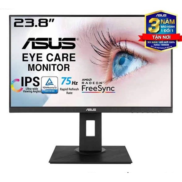 Màn hình bảo vệ mắt ASUS VA24DQLB trang bị tấm nền IPS 23,8 inch với độ phân giải Full HD (1920 x 1080) để tạo nên màn hình với góc xem rộng lên tới 178° và chất lượng hình ảnh tuyệt đỉnh. Tốc độ làm mới lên tới 75Hz, trang bị công nghệ Adaptive-Sync để hạn chế xé hình, đảm bảo phát video rõ ràng và sắc nét. Ngoài ra, dòng màn hình này còn được trang bị các công nghệ Flicker-free (Khử nhấp nháy) và Low Blue Light (Bộ lọc ánh sáng xanh dương) đều đã được TÜV Rheinland chứng nhận để mang lại trải nghiệm xem thoải mái hơn.