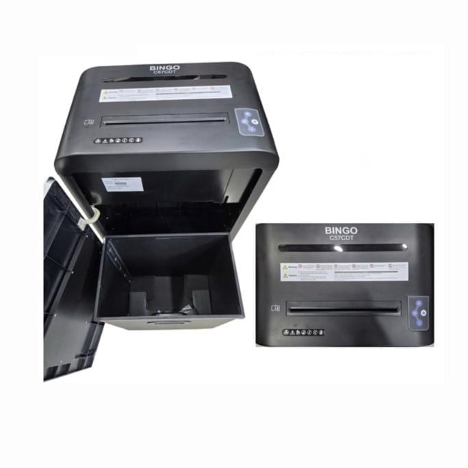 Máy huỷ tài liệu Bingo C57CDT là giải pháp bảo mật chuyên nghiệp cho các văn phòng, doanh nghiệp và cơ quan lớn. Sản phẩm có khả năng hủy đa dạng tài liệu như giấy, kim kẹp, kim bấm, thẻ ID và CD, giúp bảo vệ thông tin quan trọng một cách toàn diện. Với kích thước gọn gàng và hiệu suất mạnh mẽ, máy mang đến hiệu quả cao trong việc xử lý khối lượng lớn tài liệu hàng ngày.